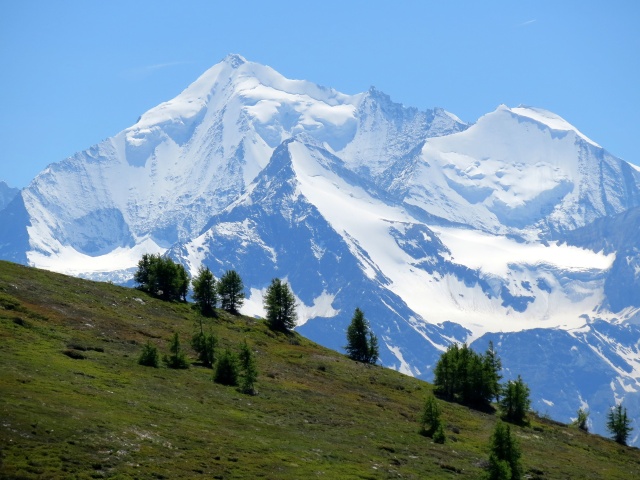 Salita a Riedji, vista su Weisshorn (4.506), Bishorn (4.153), Brunegghorn (3.833), Barrhorn (3.583)