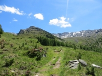 Il sentiero che scende dal Passo Invergneux nel vallone di Grauson - primo attraversamento del torrente