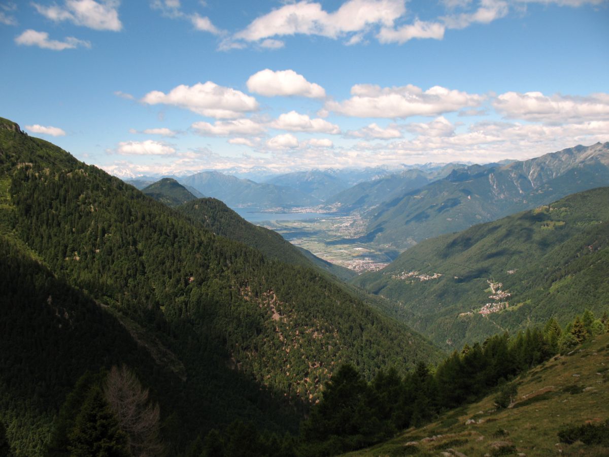 vista che offre interessanti scorci su alcuni noti rilievi delle valli di Bellinzona (in particolare il Corno del Gesero e la Cima delle Cicogne), sul Piano di Magadino e l’alto Lago Maggiore, sull’alto Lago di Como e le porte della Valtellina