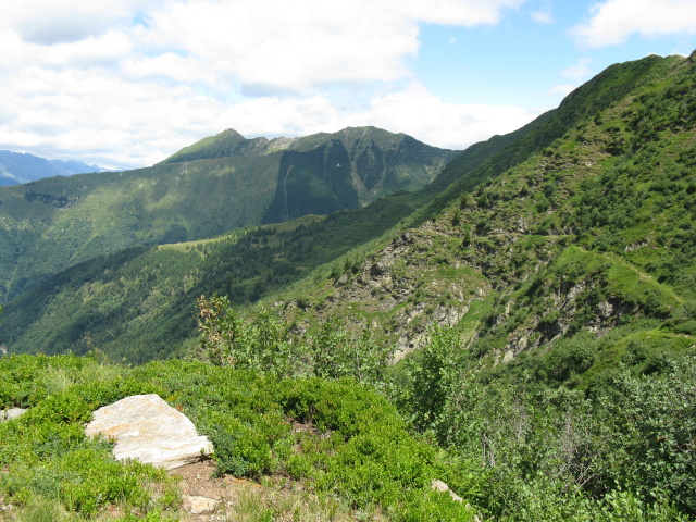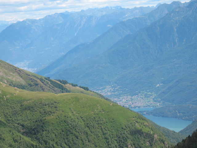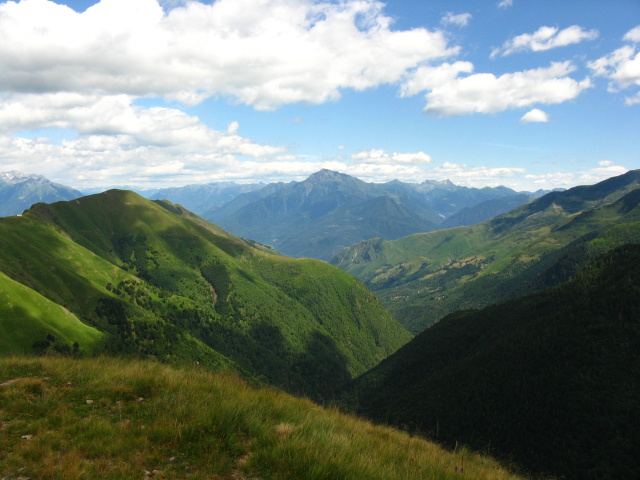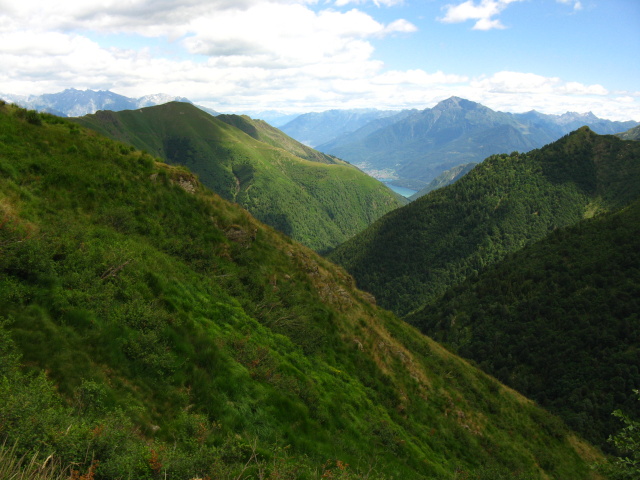 Lungo il traverso da Sommafiume al rifugio il Giovo -   panorama su Valle Albano e Monte Legnone