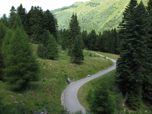 Panoramica sulla salita in mulattiera bitumata che porta al rifugio San Jorio