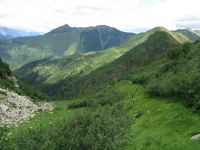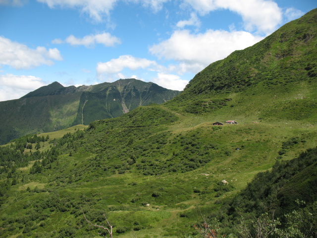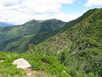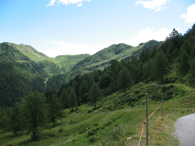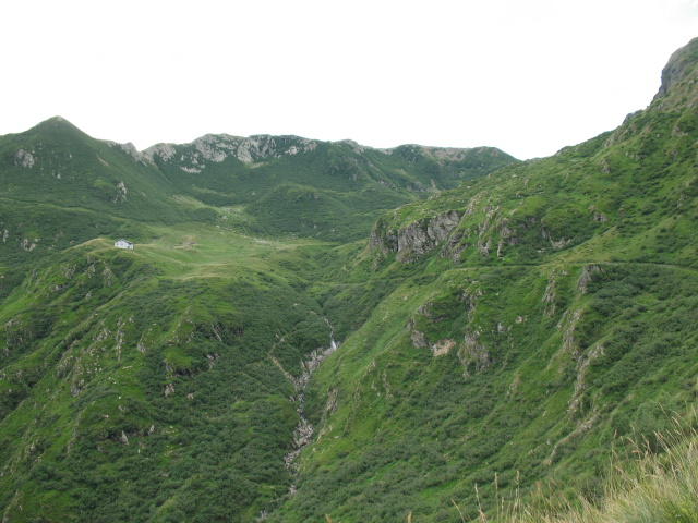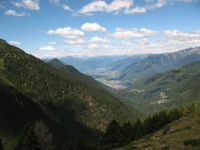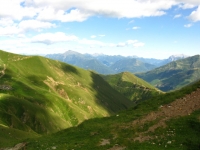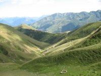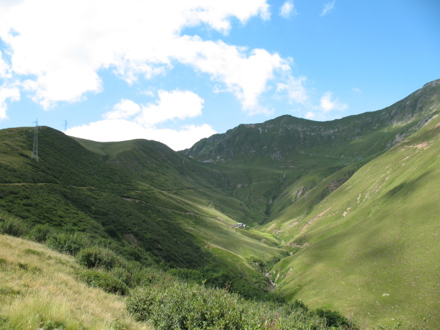 Panorama dal rifugio San Jorio sulla strada percorsa per l'ascesa, sullo sfondo il rifugio il Giovo