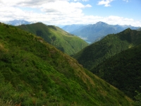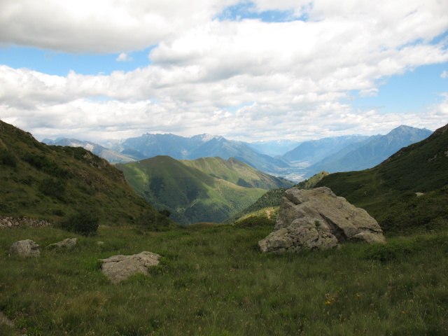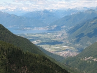 Discesa in Val Morobbia dal Passo di San Jorio, sullo sfondo il Piano di Magadino ed il lago Maggiore