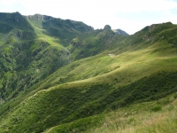 Panorama sull'alpeggio Corte Cima di Pozzolo dal rifugio San Jorio con la strada percorsa per l'ascesa
