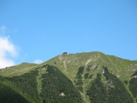 Rifugio il Giovo, sullo sfondo i primi rilievi della Valtellina