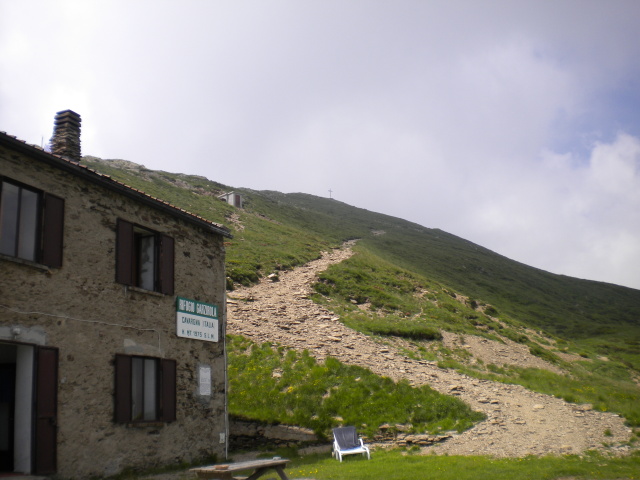 Capanna San Lucio, sullo sfondo la traversata Monte Bar-San Lucio