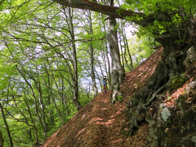 discesa: priva di difficoltà particolari; necessita attenzione se percorsa in condizioni di umido/bagnato per scivolamenti che potrebbero derivare da fondo con pietrisco instabile oltre che da una buona dose di fango; la prima parte avviene all’interno di faggeta, prestare attenzione all’inizio della primavera per la presenza di molto fogliame su sentiero che nasconde il fondo della traccia