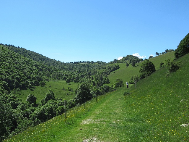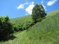 La traccia prativa che sale a Mater dal Rifugio Capanna Giuseppe e Bruno