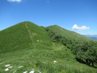 Percorrendo il bel single track che aggira il Pizzo della Croce - Panorama sul Monte di Orimento