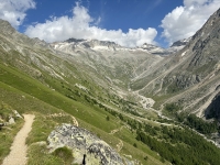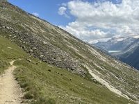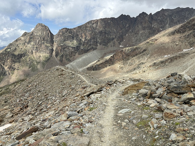 Il sentiero che scende dal Passo Invergneux nel vallone di Grauson - primo attraversamento del torrente