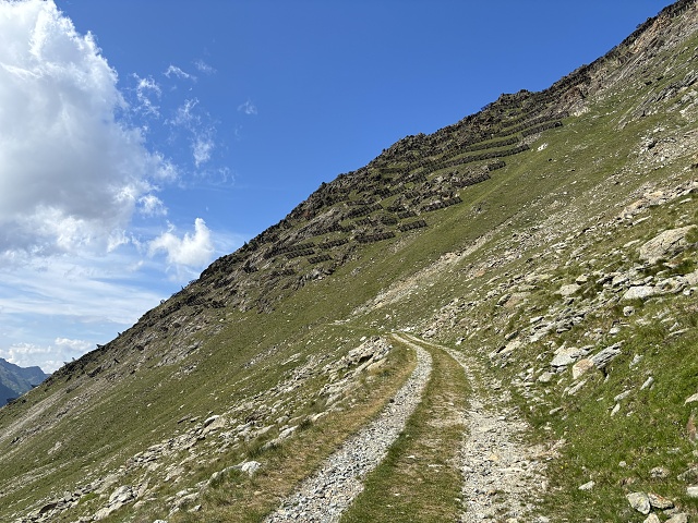 Lungo la strada della decauville che collega il lago di Rochemolles con i Bacini Frejusia