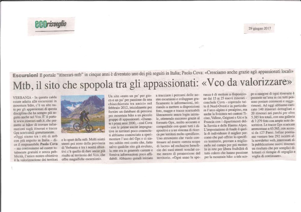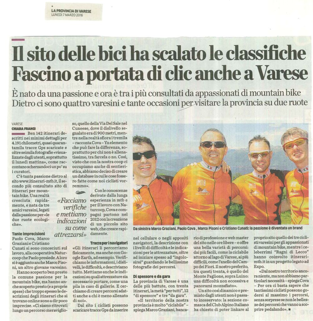 La Stampa locale ha colto con interesse i contenuti del nostro sito ritenendoli meritevoli di diffusione nei confronti dei bikers del varesotto (e non solo). A seguire alcuni articoli di Stampa locale che parlano di Itinerari-mtb.it pubblicati nel 2016/2017.