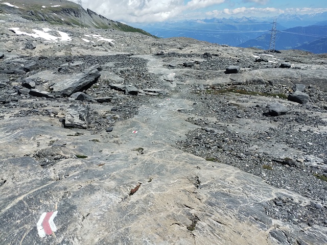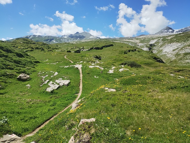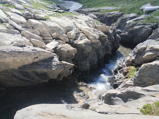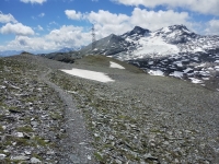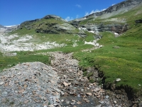 Il sentiero che scende dal Passo Invergneux nel vallone di Grauson - primo attraversamento del torrente