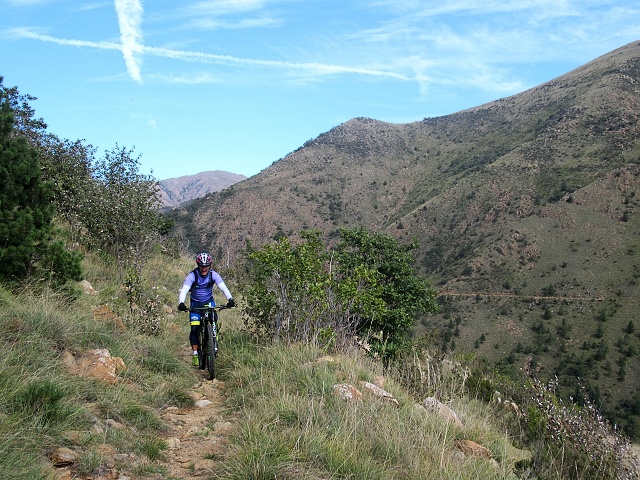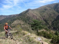 Lungo il single-track che si snoda all'interno della valle del torrente Gorzente