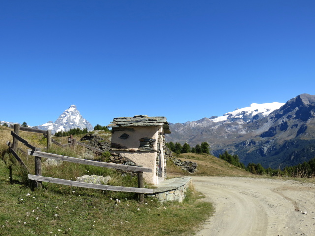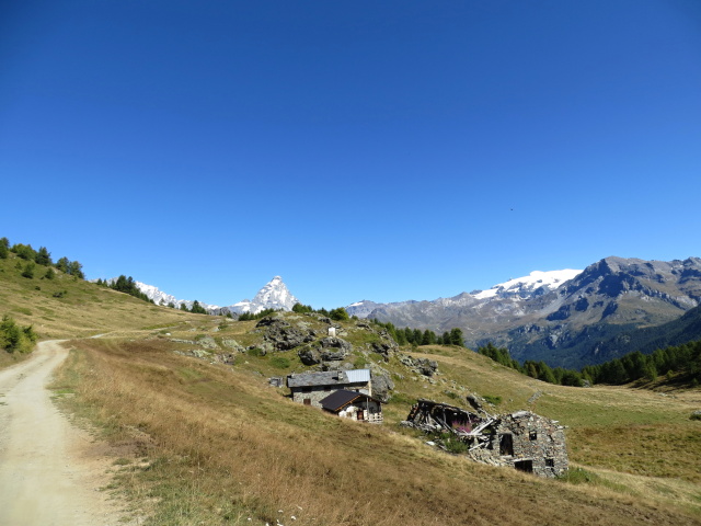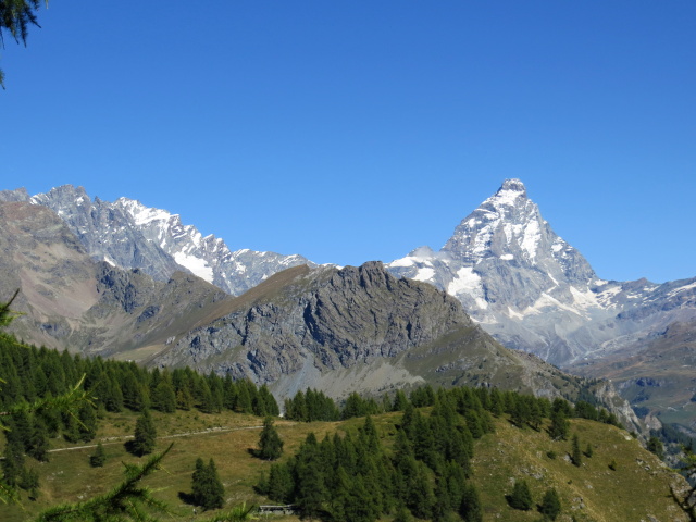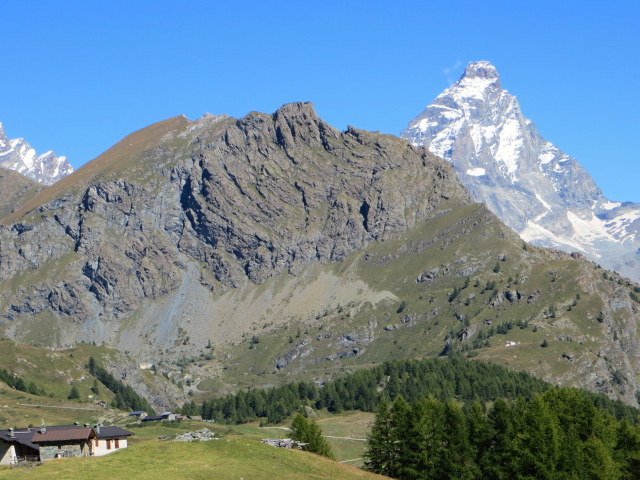 Il Cervino e le Grandes Murailles in tutto il loro splendore lungo la strada per l'Alpe Cortina