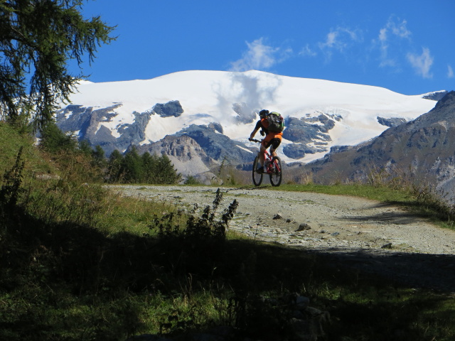 Superata l'Alpe Cortina Superiore si apre grandioso primo piano sul Piccolo Cervino, sul Breithorn e sul ghiacciaio di Ventina