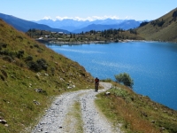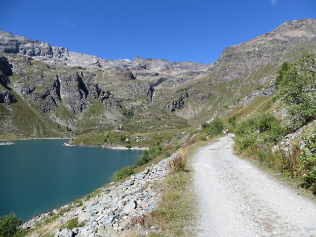 Lo sterrato che costeggia la sponda orientale del Lago di Cignana