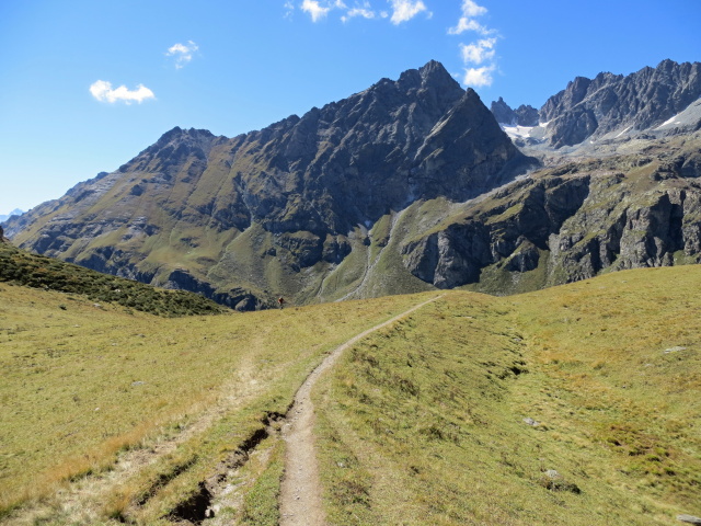 Il sentiero prativo che sale dall'Alpe di Cignana alla Finestra