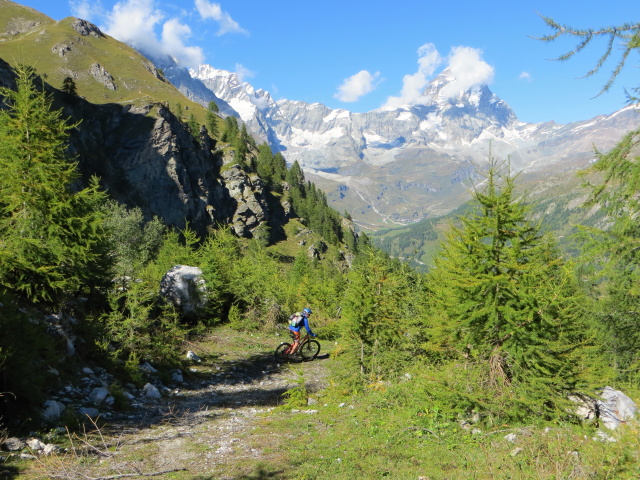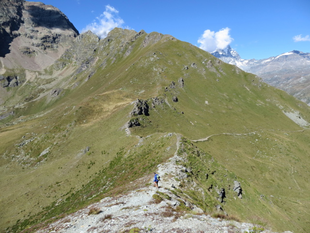 In direzione dell'Alpe Cortina, il Cervino ed il Monte Pancherot in primo piano