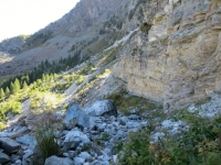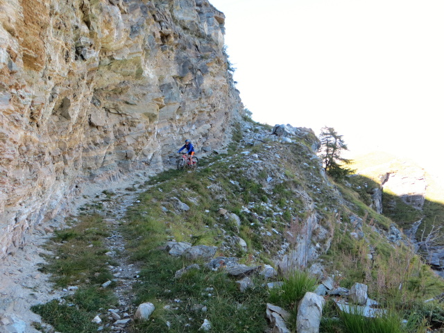Discesa dall'Alpe Crou du Tsa, attraversamento di una parete rocciosa sotto la vetta del Pancherot