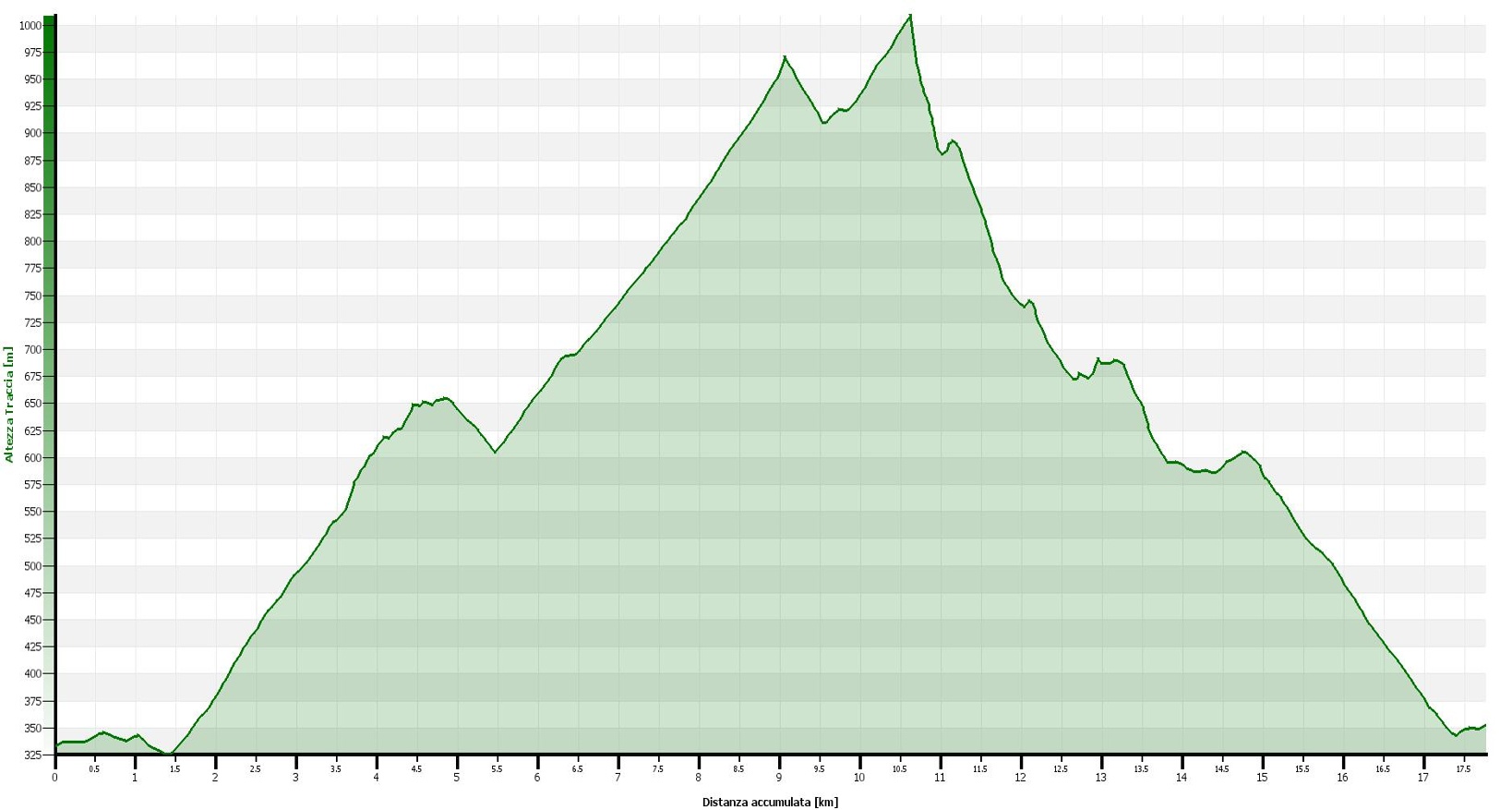 salita: l’ascesa al Monte San’Elia avviene completamente in fuoristrada sfruttando sentieri e forestali/mulattiere in discreto stato di manutenzione, eccezion fatta per il difficoltoso passaggio prima della Sella di Rendemuro, con pendenze in generale non superiori al 13% (parte finale molto meno impegnativa) anche se non mancano alcuni tratti fino al 19,5% prima della Sella. Agevole e priva di difficoltà la salita al Monte Orsa svolgendosi su asfalto (fondo stradale non in buone condizioni) inframezzato da ampio sterrato in buone condizioni, le cui pendenze nella parte iniziale si assestano tra l’8 ed l’11% per divenire più accentuate (12-16% – su asfalto) nella parte finale. Infine la terza salita rilevante di giornata, al Monte Pravello, si compie su sterrato dalle pendenze inizialmente abbastanza agevoli, più impegnative dopo il Rifugio Cadorna (12-14%): la salita è resa però più complicata dal fondo sassoso