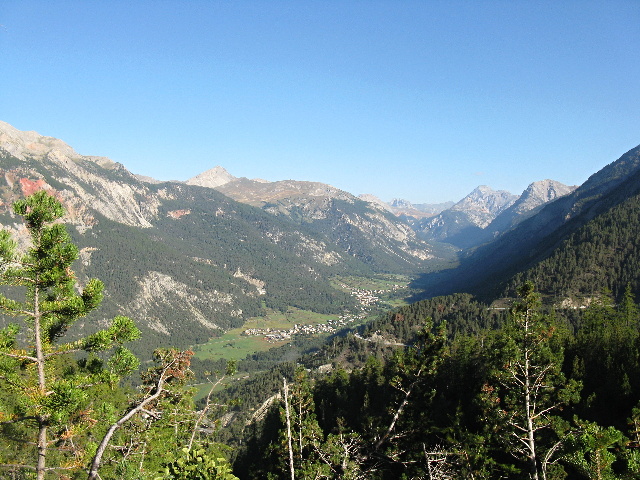 La valle della Clarée con gli abitati di Val des Pres e Plampinet visti dallo Janus