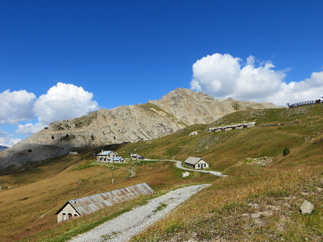 Baraccamenti posti sotto il Gondran, sullo sfondo lo Janus e lo Chaberton