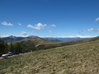 Panorama OVEST dalla Capanna Monte Bar - Al centro il Monte Tamaro, sullo sfondo la catena alpina dei 4.000 vallesani