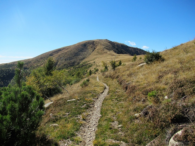 Il sentiero che scende lungo il crinale est del Monte Bar  che sarà percorso nel corso dell'itinerario