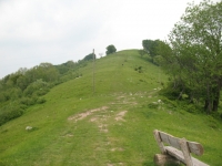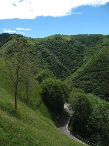 Panorama sulla discesa da percorrere in cresta dalla vetta del Bisbino
