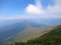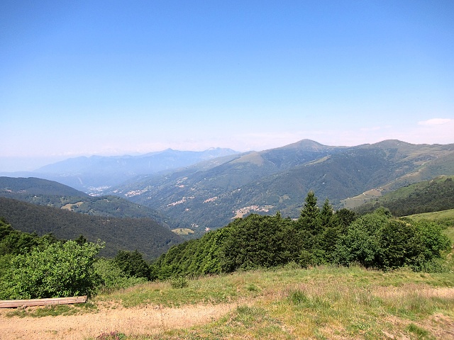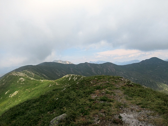 Panoramica sul crinale che verrà seguito in discesa scendendo dalla sommità del Gazzirola - Sullo sfondo, a destra, il Piano di Magadino