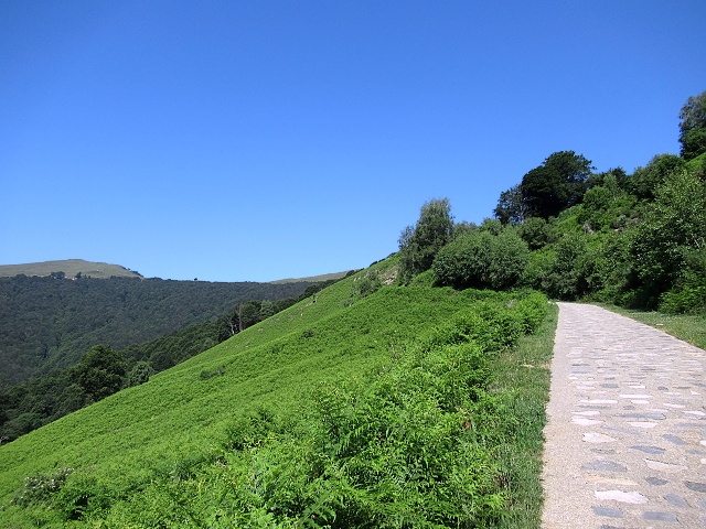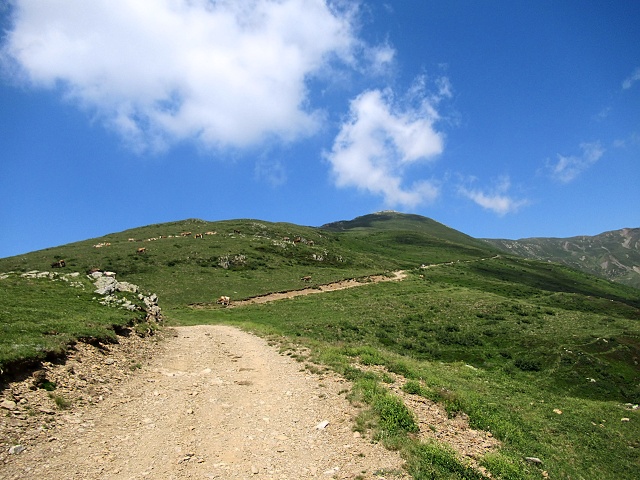 Bei panorami sugli alpeggi sottostanti il Passo San Lucio salendo lungo la sterrata/cementata