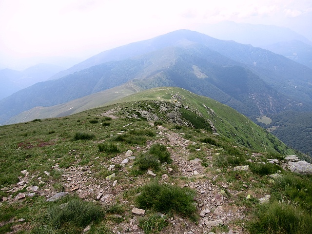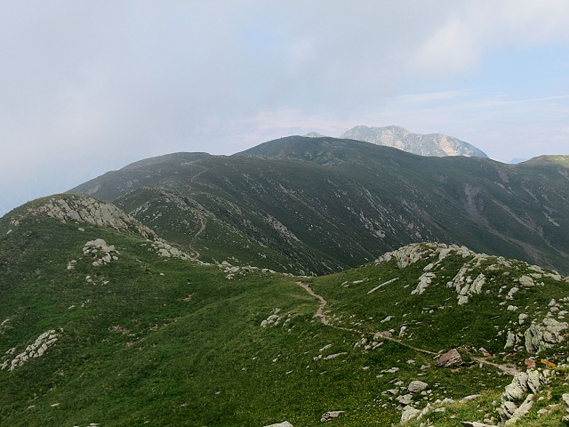 Il sentiero che corre sul crinale dal Sasso Basciota verso il Monte Gazzirola (al centro)