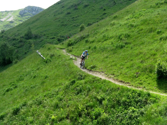 Inizio del single-track in discesa verso la Valle d'Intelvi