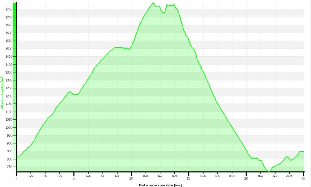km totali: 25,00 (a cui aggiungere circa 800 metri per salire a piedi al Gradiccioli ed altrettanto per il ritorno)
