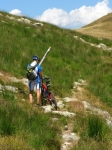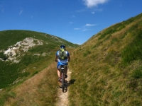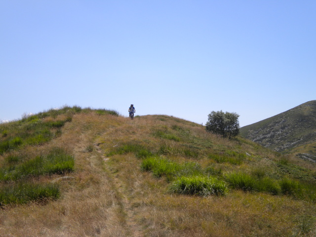In direzione del Monte Paglione nella sella erbosa sotto il Monte Covreto
