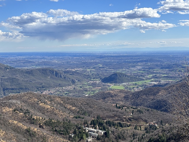 Panorama dal Monte Piambello sulla pianura Padana, sullo sfondo i primi Appennini dell'Oltrepò pavese e del basso Piemonte