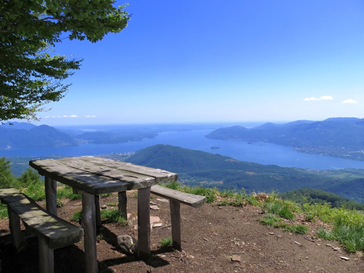 vista: Lago Maggiore, Monte Rosa, Trittico del Sempione, Gruppo del Mischabel, Corni di Nibbio, Monte Mottarone, Prealpi varesine e ticinesi