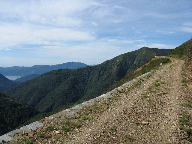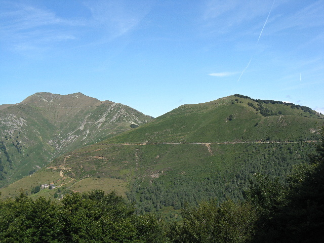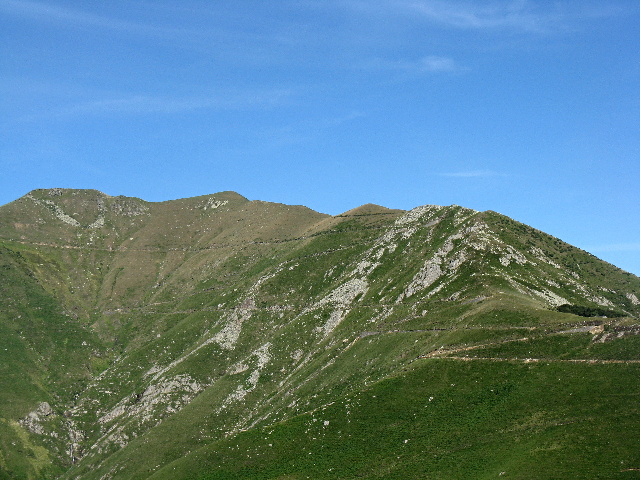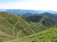 Panoramica sulla strada militare che sale a zig-zag al Bivacco Pian Vadà ed il successivo facile traverso prima dell'attacco finale alla vetta dello Zeda