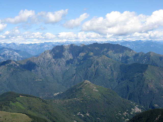 Panorama dallo Zeda - Al centro le prealpi del Luinese, alle spalle la catena Monte Tamaro-Monte Gradiccioli-Monte Magno
