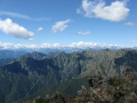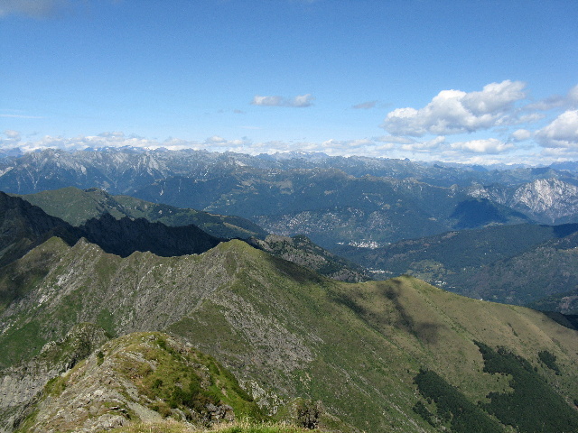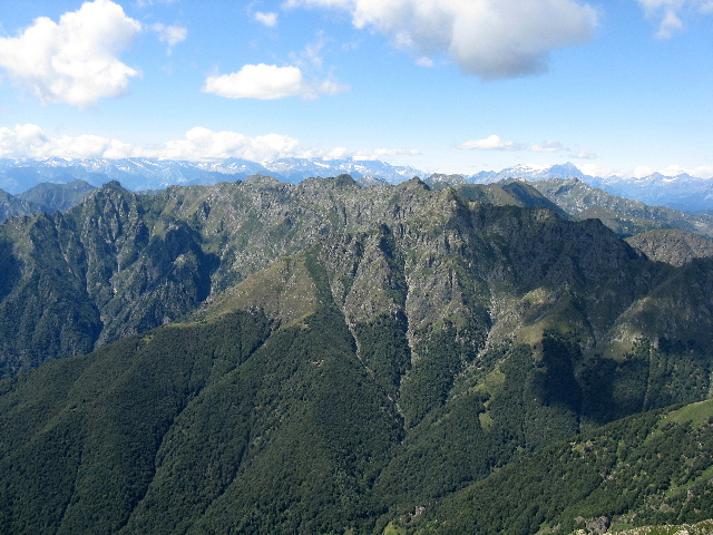Panorama dallo Zeda - Al centro in secondo piano la frastagliata catena dei Corni di Nibbio, in primo piano a destra la catena del Monte Pedum