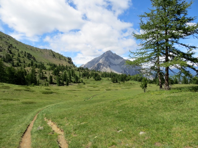 In direzione del Colle Bercia - ottimo panorama, al centro il  Pic de Rochebrune (3.320, Francia)