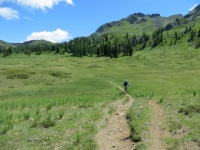 Il sentiero che scende dal Passo Invergneux nel vallone di Grauson - primo attraversamento del torrente