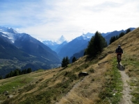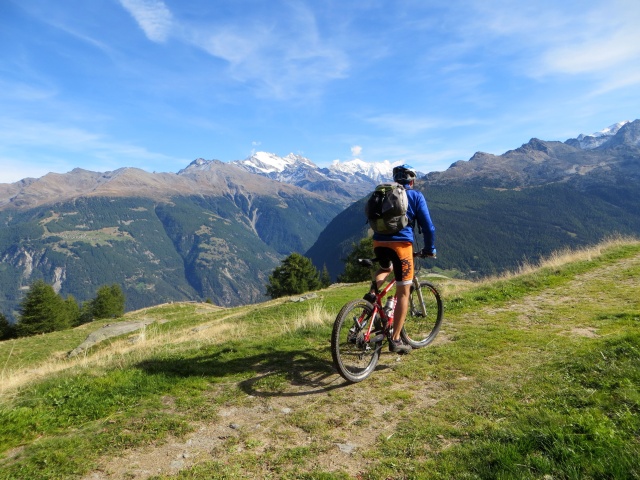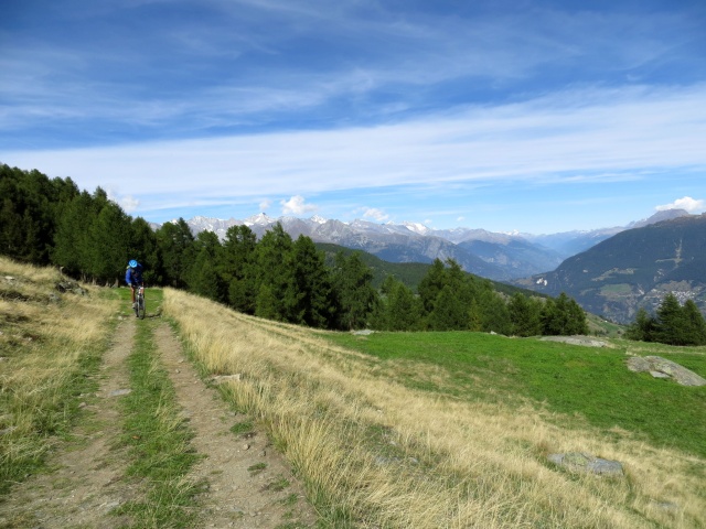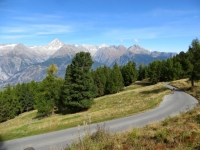 Percorrendo la traccia sterrata che da Moosalp conduce all'alpeggio di Läger - grandi panorami su Mischabel e Trittico del Sempione