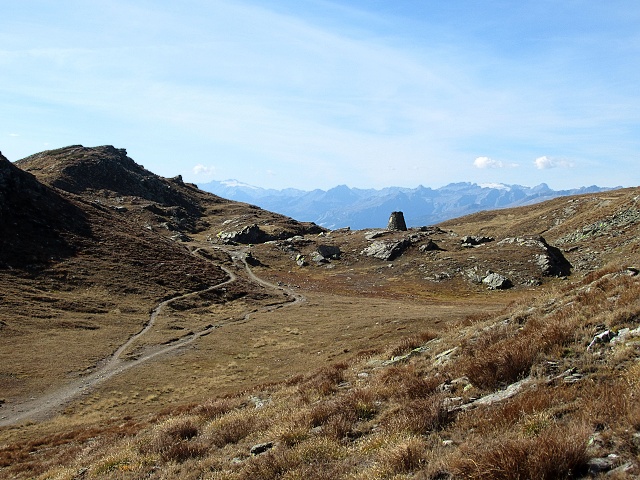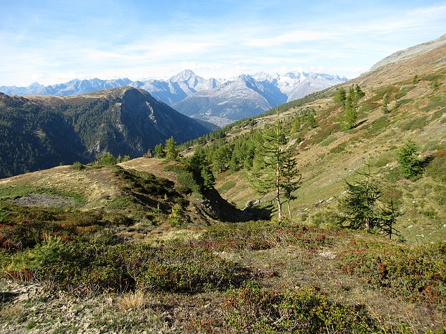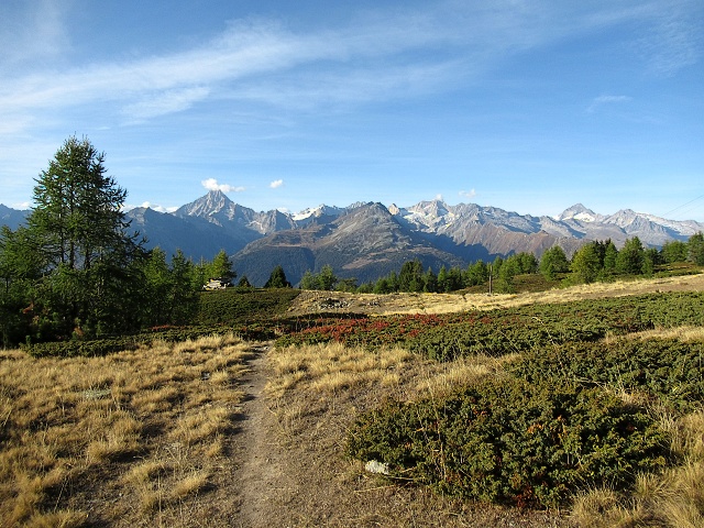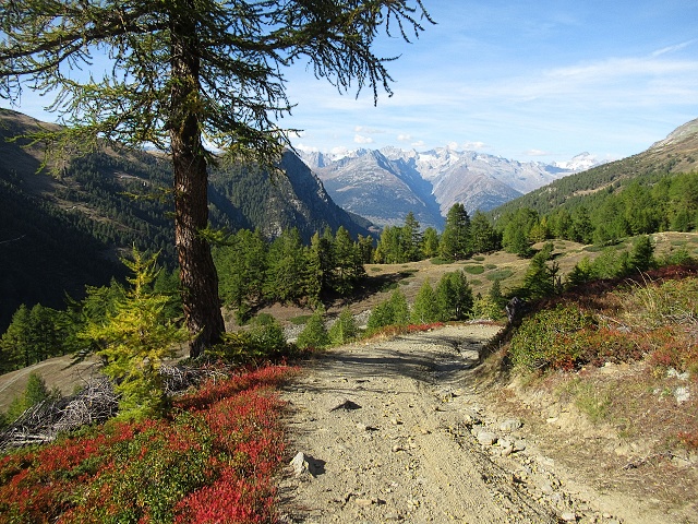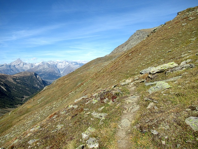 Sentiero che sale al Gibidumpass - Sullo sfondo a sx il Mischabel, a dx il Weisshorn