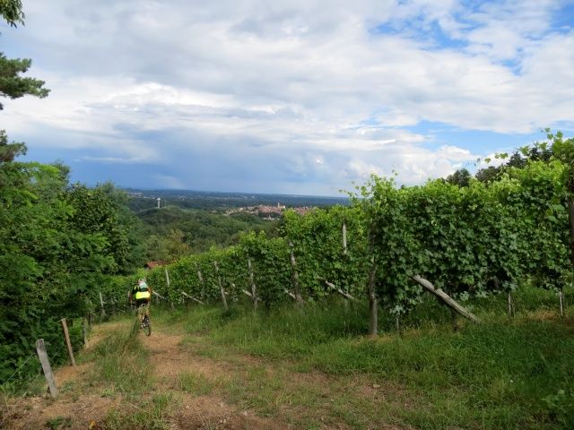 Panorama su vercellese lungo la discesa in single-track dalla Cappella di San Bernardo