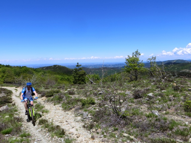 Panoramica dalla vetta del Monte Pracaban, la pianura di Alessandria e tratto di sentiero percorso