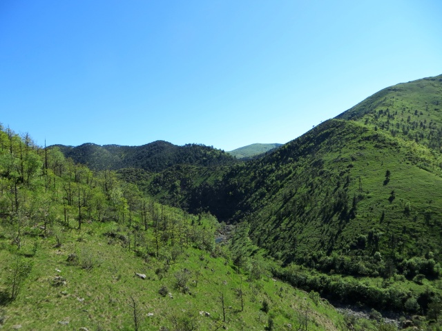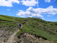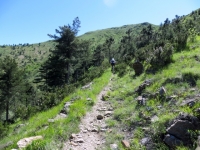 Discesa dal Monte Pracaban, sullo sfondo a destra la vetta