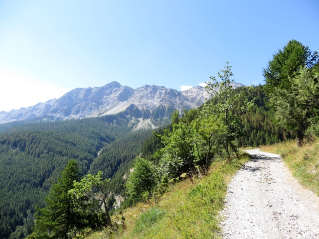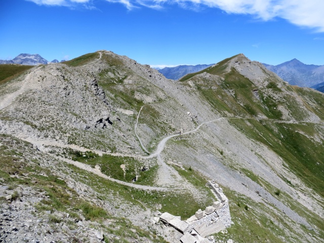 Giro di ampia soddisfazione paesaggistica che si sviluppa in alta Val di Susa nel territorio di confine con la Francia con massima escursione di giornata in corrispondenza del Passo della Mulattiera, teatro di presidio militare ai tempi delle guerre mondiali che hanno segnato questo lembo di territorio italiano/francese con baraccamenti e residui militari sparsi per le circostanti montagne. Per comodità ed opportunità l’itinerario ha inizio dalla bella frazione di Bardonecchia (Les Arnauds-Melezet), presso ampia area di libero parcheggio, ove dopo aver attraversato il ponticello in legno sul Rio di Valle Stretta si segue il sentiero segnavia nr.753 denominato “La Vie du Viò” (prestare l’attenzione di evitare la ripidissima traccia che si presenta immediatamente di fronte utilizzata per il downhill!!). Il sentiero termina incrociando la strada forestale che sale alla Punta Colomion; si svolta dunque a sinistra evitando la salita e poi immediatamente a destra seguendo le indicazioni per il Forte Bramafam/Beaulard. L’ampio sterrato procede in leggero saliscendi superando la chiesetta di Sant’Anna poco dopo la quale si giunge al bivio per il Bramafam. Evitando di proseguirvi in netta risalita, si tiene ora la destra lungo la militare che sale da fondovalle: molto rapidamente, anche attraverso una serie di tornanti si scende di quota incrociando l’asfalto nei pressi dell’attraversamento della Dora di Bardonecchia e della linea ferroviaria. Si tiene ancora una volta la destra (cartelli segnaletici per Oulx/Beaulard) su sterrato riattraversando il torrente e portandosi sul margine destro del medesimo all’interno di una bella pineta attraversata da un ottimo sterrato che corre parallelo al corso d’acqua. Superato il ristorante “al Vecchio mulino” si abbandona lo sterrato principale per salire, a sinistra, su una forestale che rapidamente incontra l’asfalto proveniente da Beaulard per Puys. Deviando a questo punto in salita in direzione dell’abitato si affronta un tratto di asfalto per ca 2,3 km costituito da svariati tornanti panoramici sul fondovalle sino ad arrivare alle prime case di Puys, dove nei pressi di una cappelletta si stacca a sinistra una traccia sterrata che entra nel bosco: trattasi della salita per il Passo Colomion e per il successivo Passo della Mulattiera. Le pendenze non sono particolarmente accentuate ed il fondo permane discreto, pertanto pedalando con regolarità, dopo essere usciti dalla vegetazione, si giunge senza particolari difficoltà nelle immediate vicinanze del primo passo di giornata: qui vale la pena staccarsi brevemente dalla strada principale (quota 1.985 ca) per risalire velocemente alle strutture del Colomion e godere dell’ottima vista panoramica sulla Conca di Bardonecchia (deviazione non in traccia gps). Ritornati poi sulla traccia principale si prosegue lungo la militare affrontando un tratto di leggera salita che aggira il pendio nord-orientale della Selletta e poi con salita più decisa e fondo decisamente più scomposto le sue pendici meridionali. La traccia di sterrato tende poi a migliorare in corrispondenza dell’inizio di una serie di tornanti: è il tratto terminale di salita che da quota 2.260 ca porta a superare rapidamente l’ultimo dislivello e con un semplice traverso dalla pendenza più moderata, peraltro oggetto di recente manutenzione, si giunge sempre in sella in prossimità del Passo della Mulattiera. Prima però di concludere l’ascesa occorre superare un brevissimo tratto (ca 10-15 metri) molto ripido su sentiero che solo i più preparati potranno affrontarlo in sella (mettere in preventivo al massimo meno di 1 minuto di spinta). Lo scenario alpino che ivi giunti (quota 2.428) si apre è decisamente di rilievo: da una parte l’Alta Val di Susa e la catena di rilievi che la circonda, dall’altra i rilievi delle confinanti vallate francesi, alcune delle cui vette appaiono molto simili alle sommità dolomitiche (pendii rocciosi e guglie che degradano rovinosamente nel sottostante pendio erboso). Caratteristico anche il panorama sulla Valle Stretta e sulla traccia sterrata che dall’opposto versante montuoso sale al Colle della Rho (un giro di alta quota in mtb permette di salire dal Colle della Rho e scendere in Valle Stretta). In prossimità del Passo si erge inoltre maestosa la rocciosa Punta Charrà ove si intravede la ferrata degli alpini che ne taglia il versante. Dal passo, tenendo la destra si imbocca una traccia molto evidente di sentiero che scende veloce nel verde pendio e che taglia in seguito il versante occidentale della Punta Charrà attraversando in maniera molto scorrevole e semplice una pietraia molto suggestiva e panoramica sino a giungere ai baraccamenti militari sovrastanti il Col des Acles. Si prosegue in discesa sulla traccia principale piegando a destra e poco dopo si imbocca al successivo bivio una traccia di sentiero che si stacca sulla destra sulle pendici della Rocher de Barrabas. Il sentiero, alternando tratti più ripidi a tratti in falsopiano attraversa un verde pianoro molto panoramico ed a seguire porta a superare un tratto molto rovinato e ripido che inevitabilmente per pochi secondi richiede percorrenza a mano. Poi la traccia diviene decisamente più abbordabile e larga giungendo alla Grange Guiaud (mt. 1.794) ove si trasforma in vera e propria forestale che scende a fondovalle transitando per la Grange Teppa (mt. 1.627). Al termine di questo tratto di veloce discesa, nei pressi della località Pian del Colle, la traccia gps evita l’asfalto e segue un percorso forestale che conduce a Melezet nei pressi dell’area degli impianti di risalita “Chesal”. Dopo alcune centinaia di metri in asfalto, superato l’ultimo parcheggio dell’area, si corre paralleli al torrente e si imbocca un sentiero che, in leggera discesa all’interno del bosco, transitando ai margini della frazione di Les Arnauds riporta al parcheggio iniziale