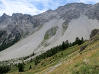 Il franoso ghiaione che caratterizza il versante della Punta Charrà